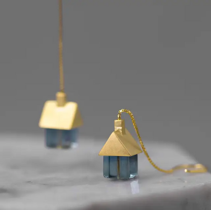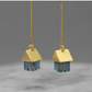 Boucles d'oreilles en argent sterling plaqué or en forme de maisonnette en fluorine naturelle. Ces jolies boucles originales et fines sauront vous apporter un style unique et chic.